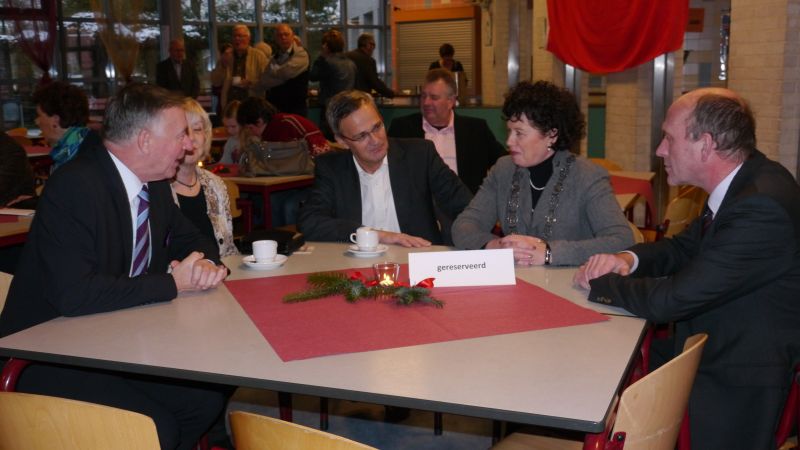 von rechts:Seine Lok, wethouder van de gemeente Vlagtwedde,; Frau Leontien Kompier, Burgemeester van de gemeente Vlagtwedde; Henk Hansons, voorzitter van de Bestuurscommissie RSG Ter Apel; Frau Lennie Sakkers, oud-gedeputeerde van de provincie Noord-Holland; Alexander Sakkers, voorsitter Transpor & Logistiek Nederland, oud-rector RSG Ter Apel, oud-burgemeester van Heerlen en Eindhoven