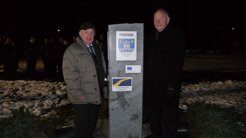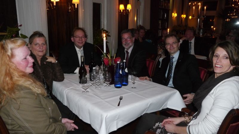 von rechts: Frau Monique Abbes; Jochem Abbes; Organisator der Eröffnungsveranstaltung und Mitglied der Projektgruppe Reind Krikke; Rektor Jan de Wit; Vorsitzende der Projektgruppe in Pontoise Frau Helga Surin; Frau Gea Krikke;